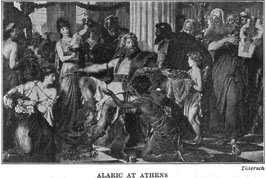 In the midst of the pillage Alaric dressed himself in splendid robes and sat upon the throne of the emperor, with a golden crown upon his head.