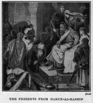 The name of Harun, therefore, became known throughout the world. It is said that a correspondence took place between him and Charlemagne and that, as you have learned, Harun sent the great emperor a present of a clock and an elephant.