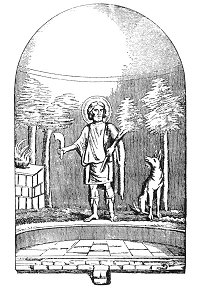 Mosaic in a niche of the vestibule of the mithræum of Fig. 16, in Ostia, near the Baths of Antoninus. Silvanus holds in one hand a fir branch, in the other a hatchet. See the Chapter on "The Doctrine of the Mithraic Mysteries."
