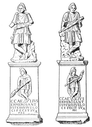 From Bavay, this route leads to Boulogne (Gesoriacum), the naval base of the classis Britannica or Britannic fleet. The statues of the two dadophors, or torch-bearers, which have been found here and were certainly chiselled on the spot, were doubtless offered to the god by some foreign mariner or officer of the fleet. It was the object of this important naval station to keep in daily touch with the great island that lay opposite, and especially with London, which even at this epoch was visited by numerous merchants. The existence of a mithræum in this principal commercial and military depot of Britain should not surprise us. Generally speaking, the Iranian cult was in no country so completely restricted to fortified places as in Britain. Outside of York (Eburacum), where the headquarters of the troops of the province were situated, it was disseminated only in the west of the country, at Caërleon (Isca) and at Chester (Deva), where camps had been established to repel the inroads of the Gallic tribes of the Silures and the Ordovices; and finally in the northern outskirts of the country along the wall of Hadrian, which protected the territory of the empire from the incursions of the Picts and the Caledonians. All the stations of this line of ramparts appear to have had their Mithraic temple, where the commander of the place (præfectus) furnished an example of devotion for his subordinates. It is evident, therefore, that the Asiatic god had penetrated in the train of the army to these northern regions, but it is impossible to determine precisely the period at which he reached this place or the troops by whom he was carried there. But there is reason for believing that Mithra was worshipped in these countries from the middle of the second century, and that Germany 8 served as the intermediary agent between the far Orient