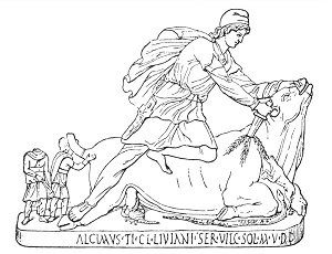 Several leagues from Vienna, passing across the frontier of Noricum, we come upon the hamlet of Commagenæ, the name of which is doubtless due to the fact that a squadron of Commageneans (an ala Commagenorum) was there quartered. One is not surprised, therefore, to learn that a bas-relief of the tauroctonous god has been discovered here. Nevertheless, in this province, as in Rhætia, the army does not seem to have taken, as it did in Pannonia, an active part in the propagation of the Asiatic religion. A belated Inscription of a speculator legionis I Noricorum is the only one in these countries that mentions a soldier; and generally the monuments of the Mysteries are very sparsely scattered in the valley of the Upper Danube, where the Roman troops were concentrated. They are not found in increased numbers until the other slope of the Alps is reached, and the epigraphy of this last-named region forbids us to assign to them a military origin.
