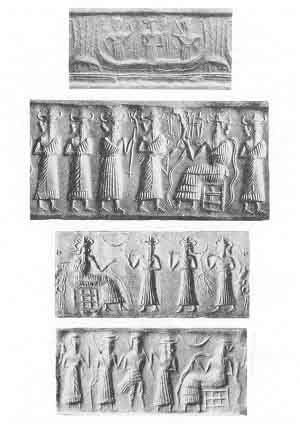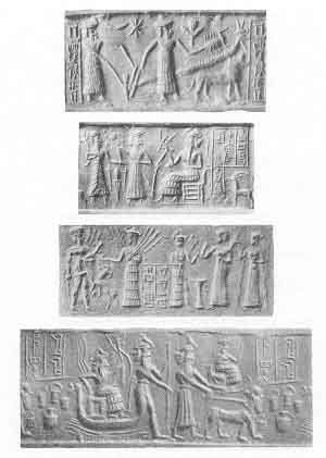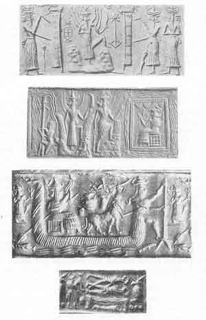 (Reproduced, by permission of the Macmillan Company, from Henri Frankfort, Cylinder Seals (London, 1939), plates XIXa, XXIa, and XVIIIj.)