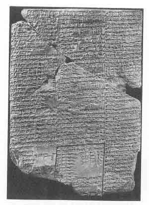 If we paraphrase and analyze the contents of this passage, it may be worded as follows: Heaven and earth, originally united, were separated and moved away from each other, and thereupon the creation of man was ordained. An, the heaven-god, then carried off heaven, while Enlil, the air-god, carried off earth. All this seems to be according to plan. Then, however, occurred something disruptive. For the goddess Ereshkigal, the counterpart of the Greek Persephone, whom we know as queen of the nether world, but who originally was probably a sky-goddess, was carried off into the nether world, perhaps by Kur. No doubt to avenge this deed, the water-god Enki set sail to attack Kur. The latter, evidently to be conceived as a monster or dragon, did not stand idly by, but hurled stones, large and small, against the keel of Enki's boat, while the primeval waters attacked Enki's boat front and rear. Our poem does not give the result of this struggle between Enki and Kur, since the entire cosmogonic or creation introduction has nothing to do with the basic contents of our Gilgamesh composition; it was placed at the head of the poem only because the Sumerian scribes were accustomed to begin their stories with several introductory lines dealing with creation.